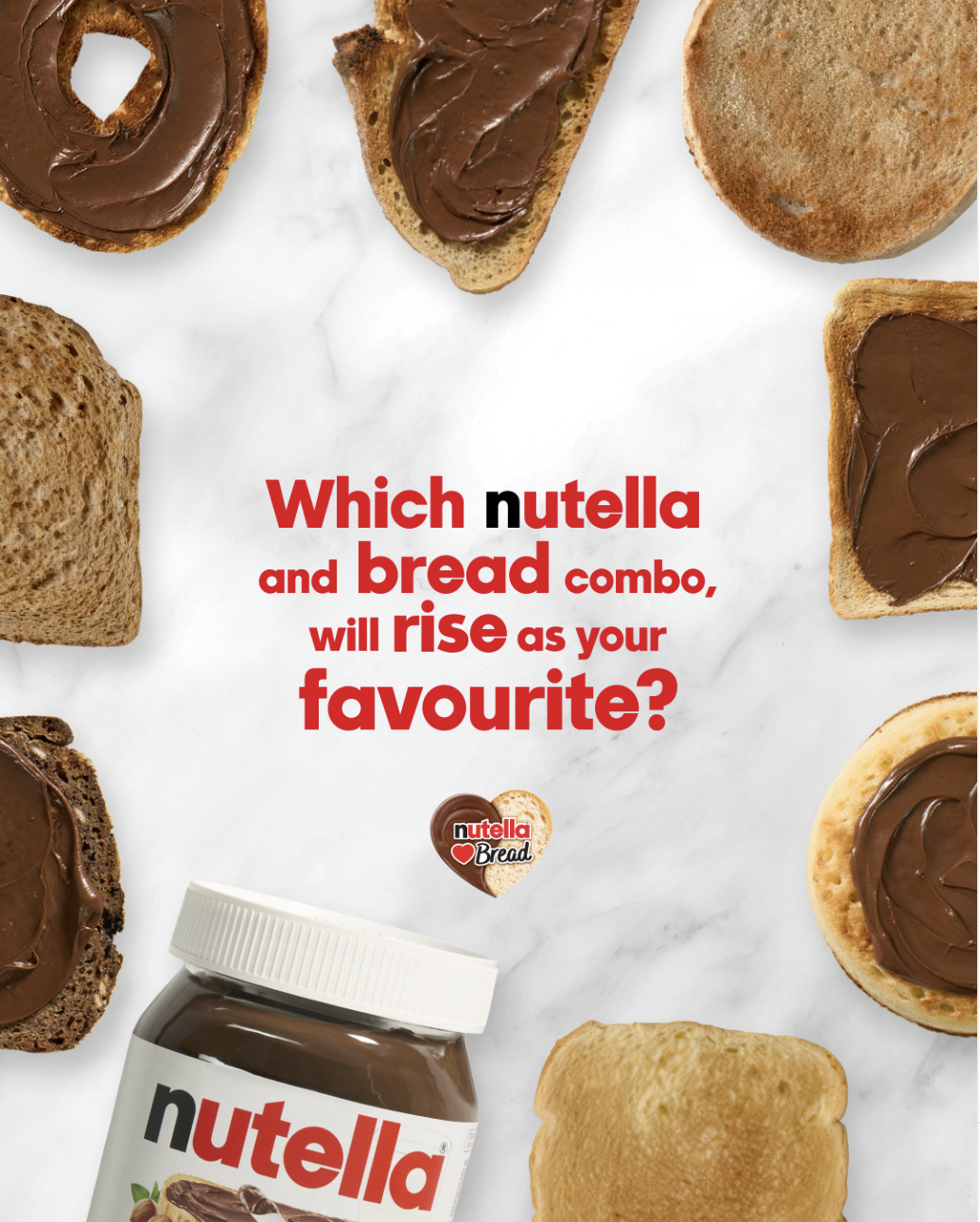 So we launched a nationwide search for the very best bread to pair with Nutella, creating a social campaign that got people debating online, exploring with families and foodies as they sliced, toasted and tore through combos before crowning the ultimate winner.